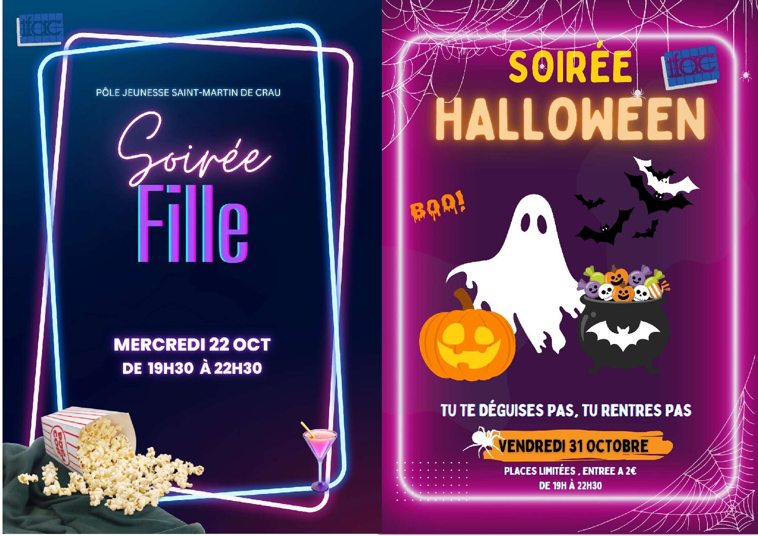 Le pôle jeunesse organise deux soirées durant les vacances de la Toussaint pour les 11-17 ans. Inscription obligatoire, places limitées et tarif de 2€. Pour rappel, les jeunes n’ont pas le droit de rentrer seuls, merci de venir les récupérer.